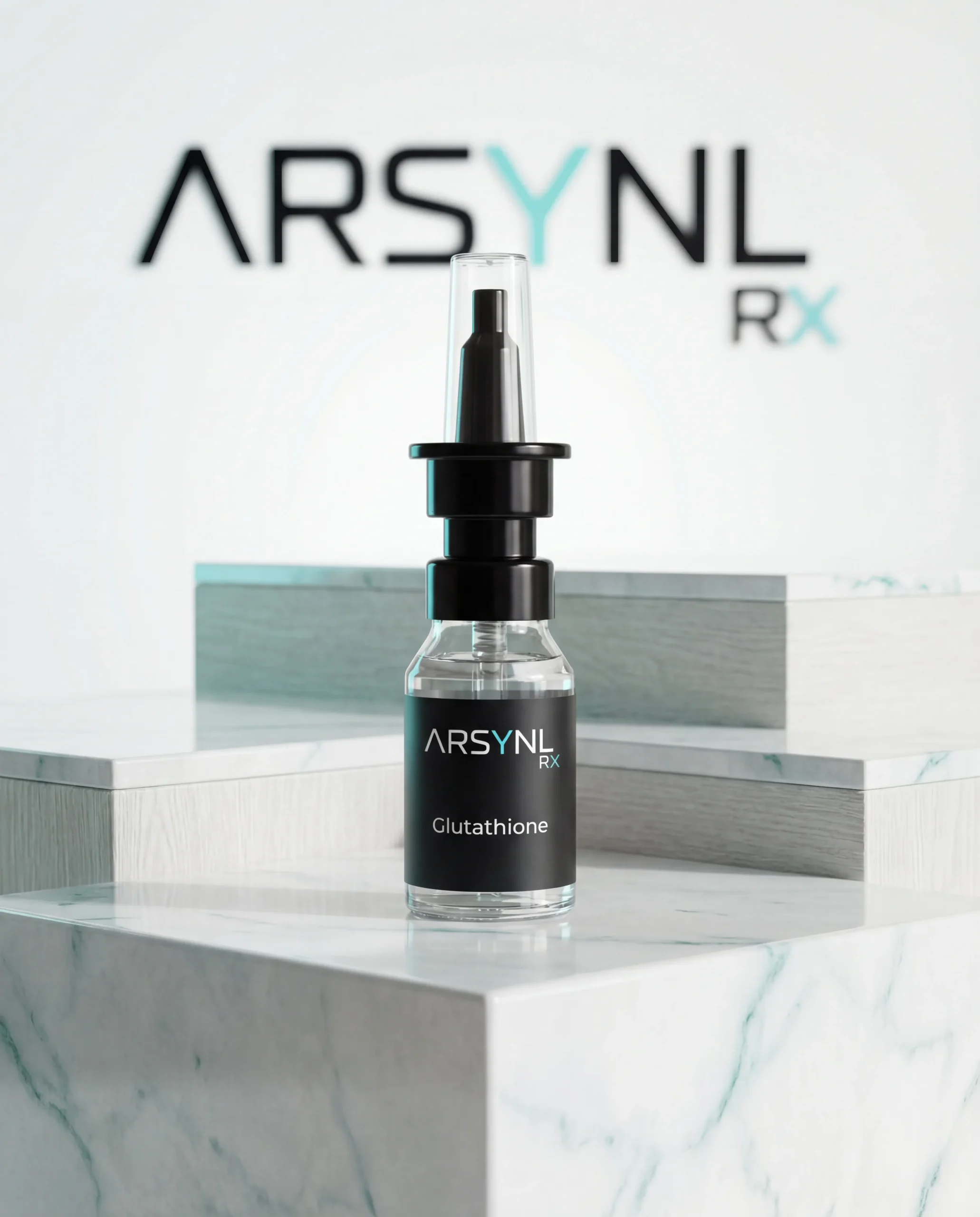 At ARSYNL Rx, we provide Glutathione nasal therapy designed to support cellular health, detoxification, and skin wellness under the guidance of U.S.-licensed providers. Glutathione is a powerful antioxidant that helps protect cells from oxidative stress while supporting liver function, immunity, and overall vitality. Delivered via nasal spray, this formulation allows for convenient, non-invasive administration as part of a medically guided treatment plan.