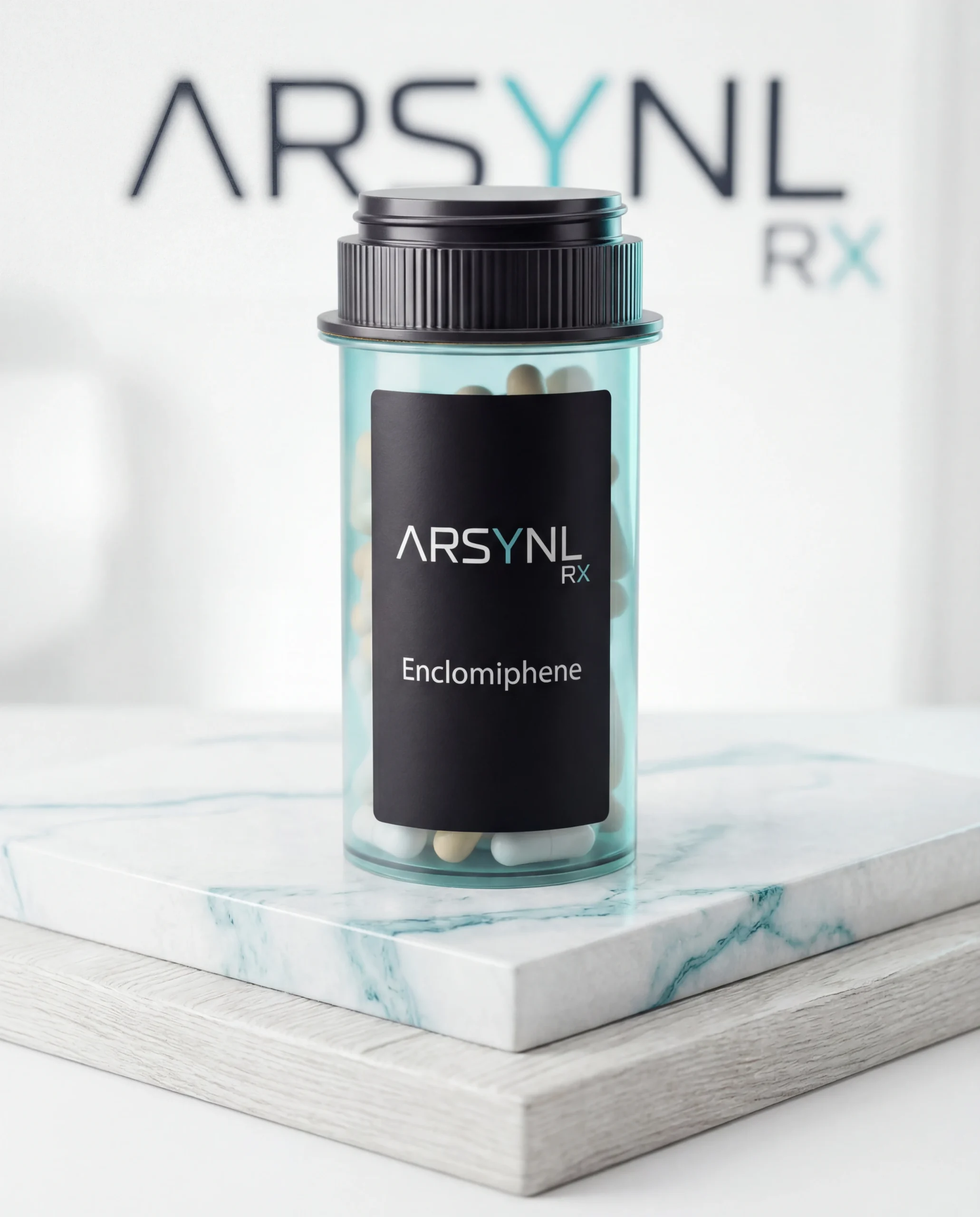 ARSYNL Rx prescribes Enclomiphene, an oral medication used to encourage the body to produce testosterone naturally. It is taken as a pill and does not require injections. Medication is only provided when approved by a U.S.-licensed medical provider.